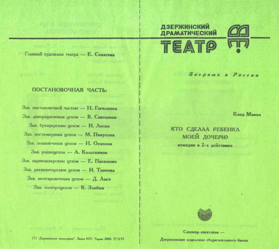 Программа спектакля «Кто сделал ребенка моей дочери?» в Дзержинске