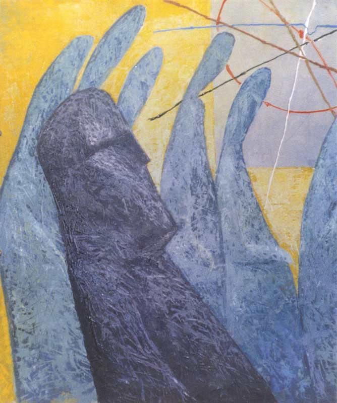 Триптих "Метрополитен опера", 1992 г., х.м., левая часть "Приезжий", 100х85 см.
