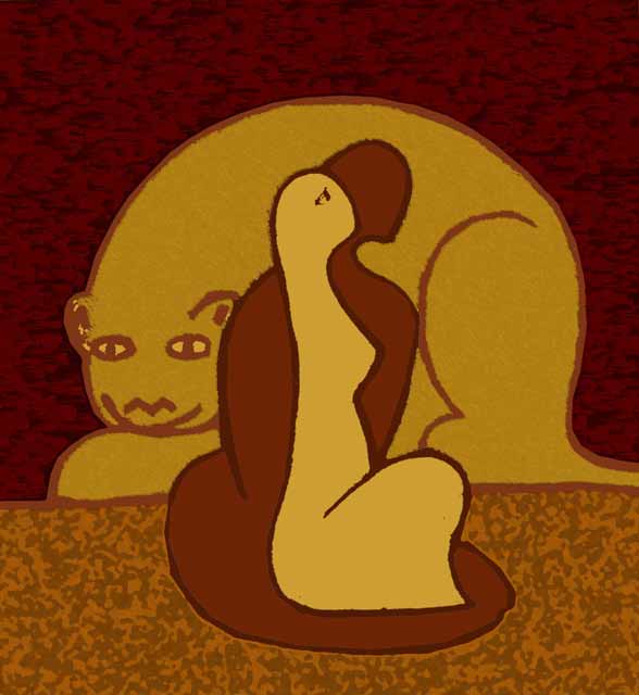 Das Paar auf dem Hintergrund die Katze