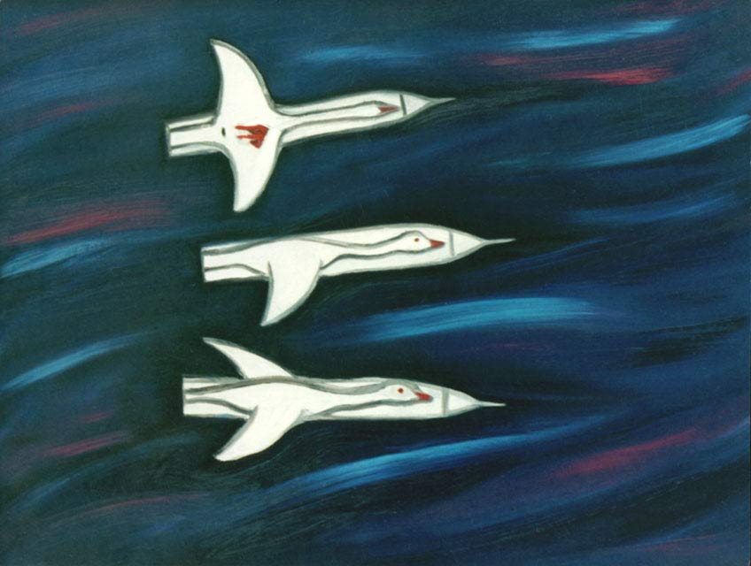 Die Gänse - Schwäne, 2002, Öl auf der Hartfräserplatte, 61