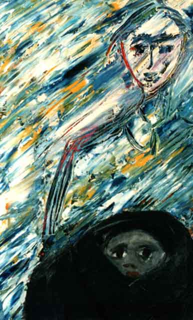 Die unendliche Kindheit, die in schnell die vergehende Jugend übergeht, 1994, Öl auf der Hartfräserplatte, 55