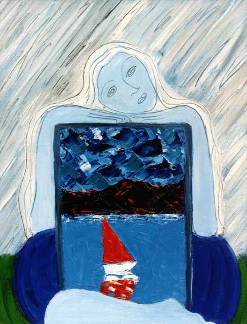 Das scharlachrote Segel (die Dichterin), 1995, Öl auf der Hartfräserplatte, 57