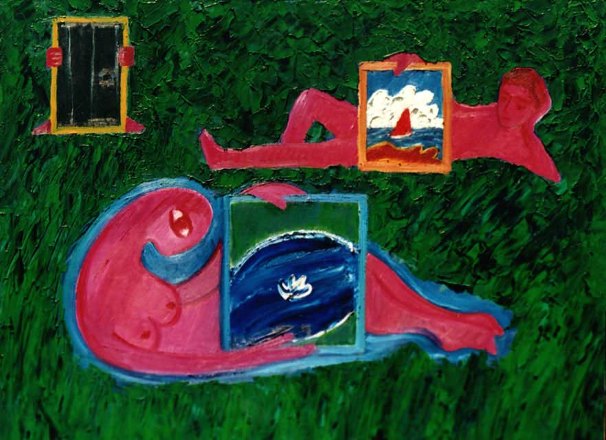 Die Gruppenausstellung in der Freiland, 2001, Öl auf der Hartfräserplatte, 60