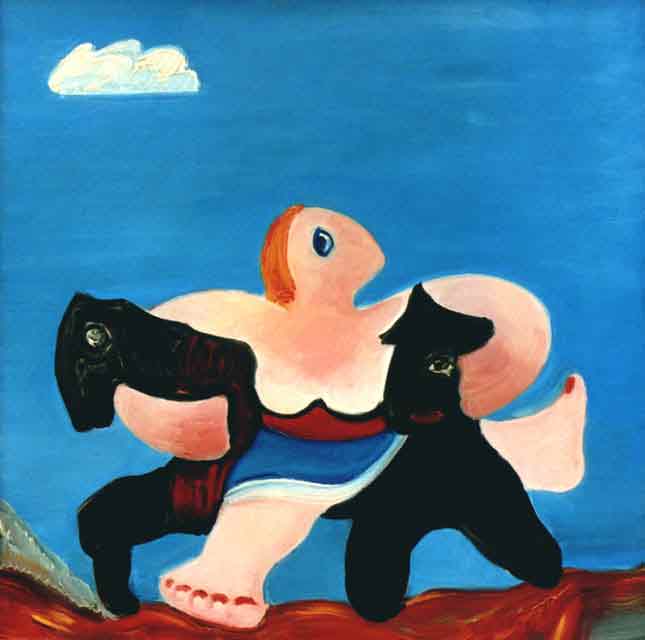 Ziehe - stoß, 1993, Öl auf der Hartfräserplatte, 90