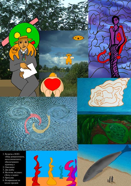 Names of works: 1.Painter, 2. Meeting with UFO: "I am looking for a