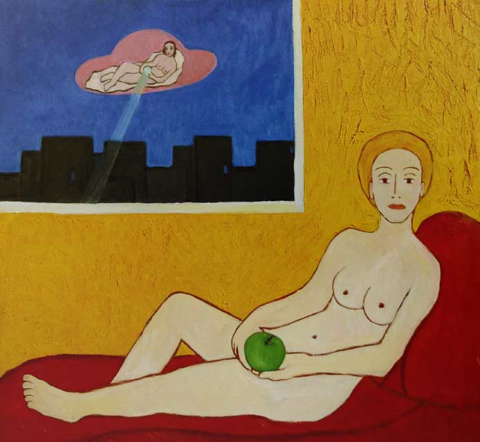 Lady here and lady  somewhere, 2013, oil on canvas, 81x72 cm.