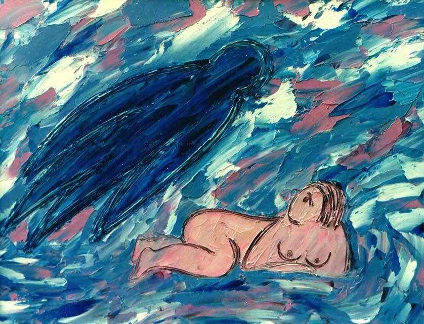 Двое на пляже, 2000, оргалит, масло, 46,5х60,5 см.