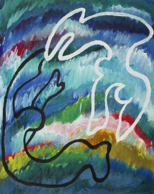 Двое (2), 2011, бумага, темпера, 45х36 см.