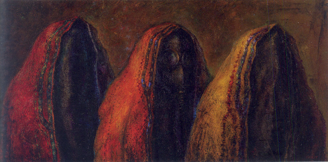 Кто самый красивый – выразительная картина с отличным суггестивным эффектом. Благодаря многослойному нанесению краски и тонким градиентам светлых и темных контрастов, Гулиев моделирует фигуры чувственной материальности и великолепной пластичности, которые контрастируют с удручающей узостью пространства изображения. Свет и тень создают загадочное настроение, земные тона придают картине архаическую ауру одновременно