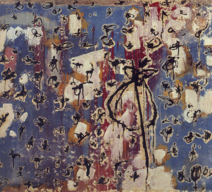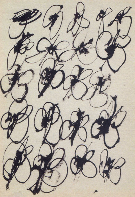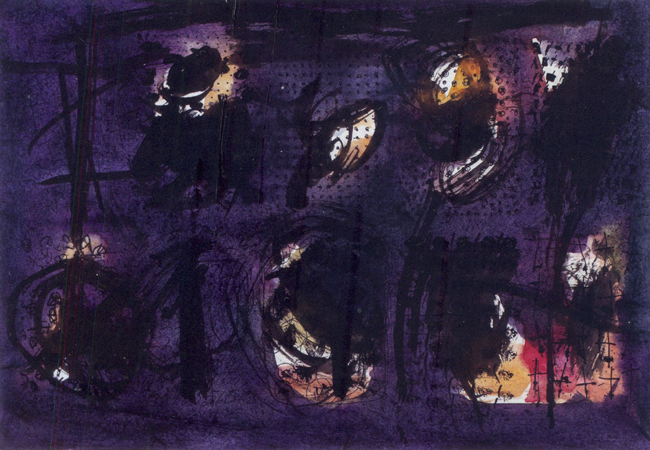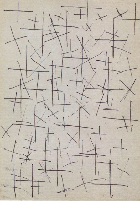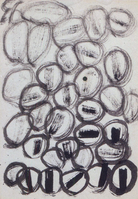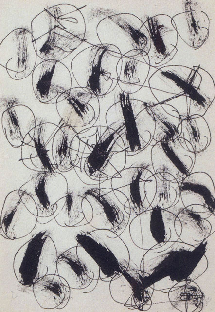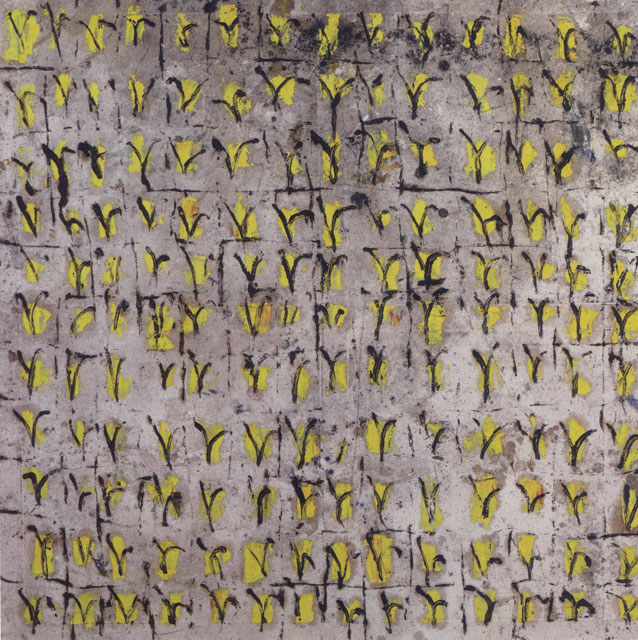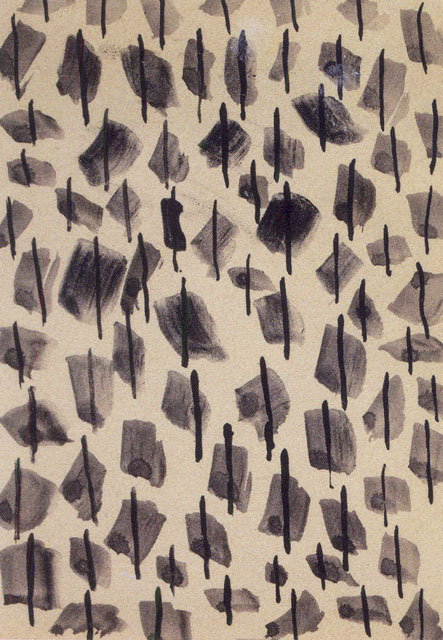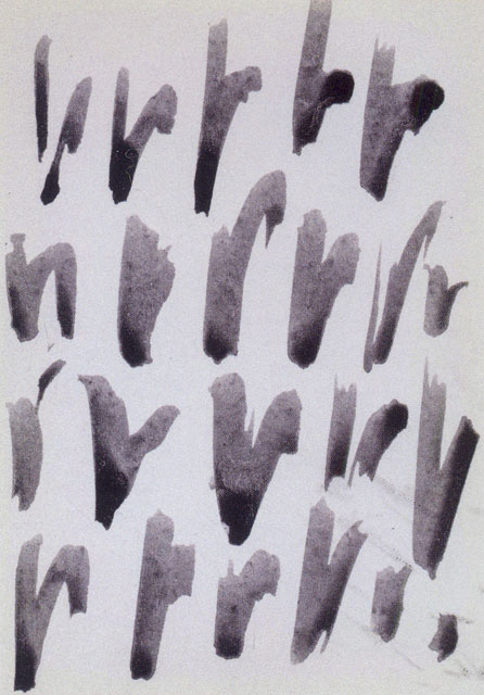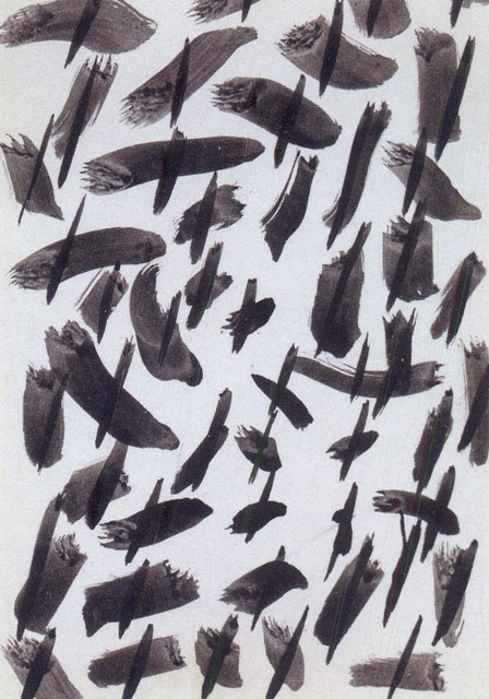 В своей работе Оласюк развивает уникальный визуальный язык из уменьшенных каллиграфических символов. С помощью быстрых, демонстративных мазков он размещает повторяющиеся варианты направляющей формы на поверхности изображения, они как будто случайно сгруппированы, выстроены, сдвинуты. Результатом является слабо упорядоченный хаос, который, несмотря на все абстрактность, не кажется бессмысленным, а напоминает последовательный визуальный результат философского мыслительного процесса. «Художник - это свет, который освещает конкретную тему с одной точки зрения или со всех сторон». 4 Понимание искусства как философского и интеллектуального процесса, который без идеологических воздействий постоянно ставит под сомнение реальность, было одной из основных позиций нонконформистского подхода художника.