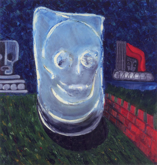 Картина «Памятники неизвестному зеку» представляет собой единое обвинение, сформулированное из нескольких ассоциативных элементов: на основе увеличенной фотографии раздавленного окурка Валюс изображает огромный человеческий череп рядом с частью кремлевской стены. На заднем плане есть вариант напоминающий памятник жертвам лагеря смерти «Треблинка» Вадима Сидура 3 и мемориал скульптора Михаила Шемякина, посвященной памяти жертв политических репрессий. 4 Еще один вариант «памятника» похож на огороженный завод или даже город, которые часто строили заключенные. В гнетущей картине «Лупа» Валюс очень жестоко осуждает сексуальные нравы в местах заключения.