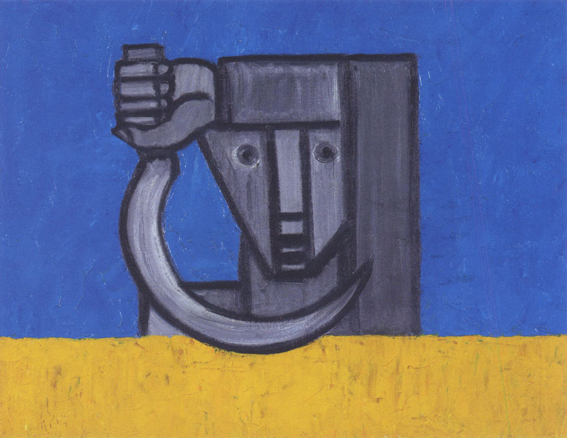 Художник убежден, что картины временами лучше подходят для передачи сообщений, чем текст. «Картины легче понимать, чем слова, осмотр картины занимает меньше времени, чем прочтение текста». Художники коммунистического советского режима прекрасно понимали, как сильно символические образы влияют на людей и как убедительно политические послания могут передаваться с помощью искусства. «Искусство, и живопись в частности, имеет довольно много разных функций. Например, в обществах с тяжелыми политическими режимами одной из функций искусства является демонстрация людям, что всё в порядке, беспокоиться и грустить нет оснований. В ходу красивые пейзажи, обильные натюрморты, счастливые семьи, радостный труд, грандиозные достижения, портреты деятелей. Объяснить немцам, что такое социалистический реализм, очень просто: "Это то, что в вашем искусстве было при Гитлере".2 Как и некоторые другие нонконформистские художники, такие как Эрик Булатов (род. 1932), Валюс работает с общими символами марксизма-ленинизма, но пользуется ими с иронией. Так «Наш паровоз» (рис. Стр. 22) с портретом похожим на Ленина ссылается на популярную коммунистическую боевую песню «Наш паровоз вперед лети, в коммуне остановка. Другого нет у нас пути [...}», с другой стороны, щит снежного толкача также намекает на чистки, которые власть устраивала в стране. Картина также вызывает ассоциации с выставкой под открытым небом в Москве, которая была жестоко уничтожена бульдозерами в 1974 году. В картине Валюса столбы, твердо вбитые между шпал, мешают локомотиву продолжать движение. Серп и молот - в советской пропаганде символ сплоченности рабочих и крестьян - переосмысливается усталой от пропаганды фигурой, держащей серп у горла.