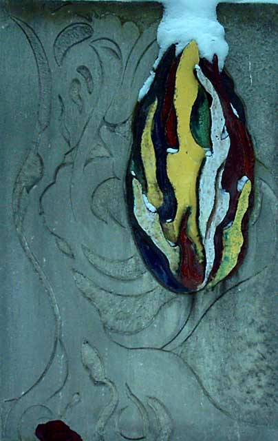 Понятно, что цветная керамическая вставка символизирует творчество, сами произведения и вложенные в них чувства. Поддерживает эту вставку фигура, напоминающая отчасти человека, отчасти дерево. Для пояснения процитирую стихотворение Марины Цветаевой из цикла "Деревья":