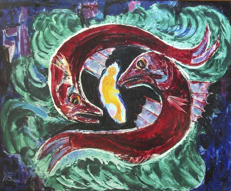 Рыбы и русалка, 1968, холст, масло,