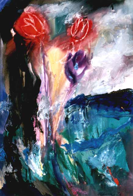 Три тюльпана, 1970, бумага, темпера, 60х40 см.