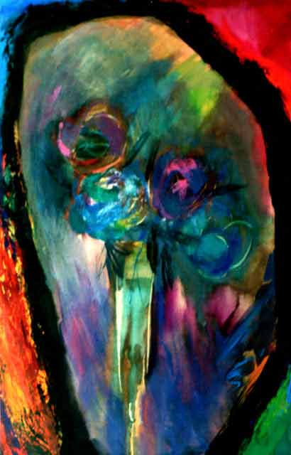 Цветы в зеркале,1970, бумага, темпера, 60х40 см.