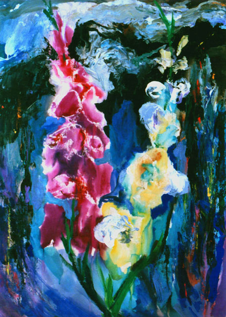 Большие гладиолусы, 1970, бумага, тмпера, 80х60 см. Собр.Худ. фонда МОСХа.