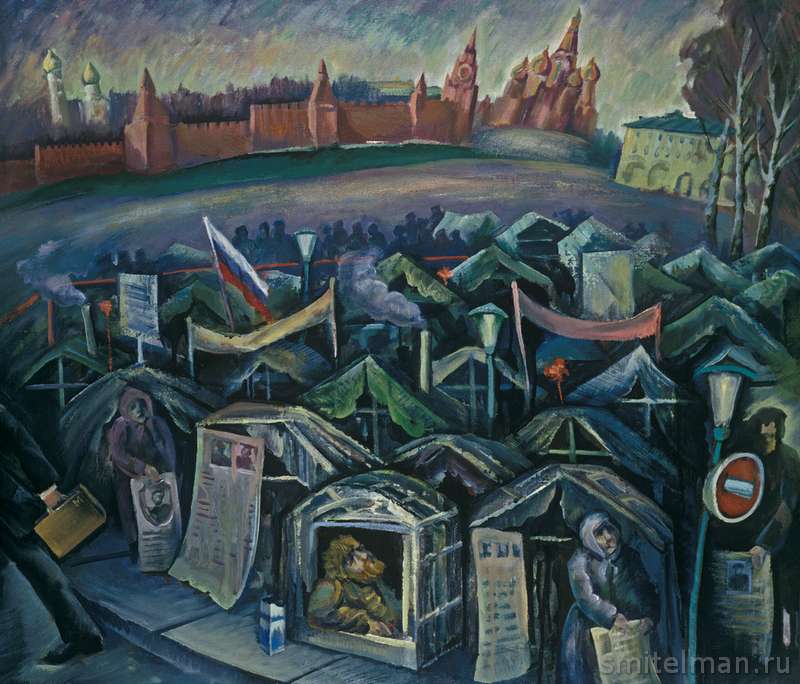Catastrophic reconstruction - 1990 - 1990 canvas, oil 90х20 cm.