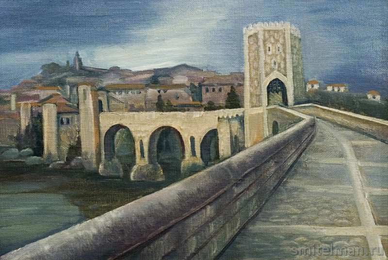 Средневековый мост в Каталонии - 1997 холст, масло 35х70 см.