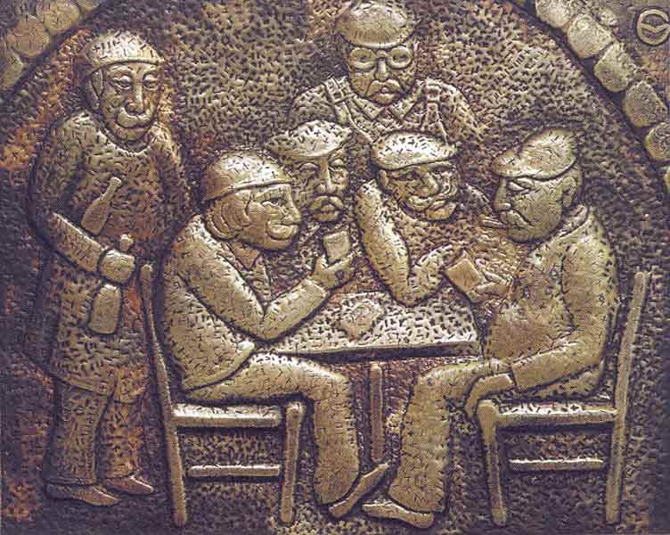 Игра в карты, 1971, чеканка , латунь, 48х58 см.